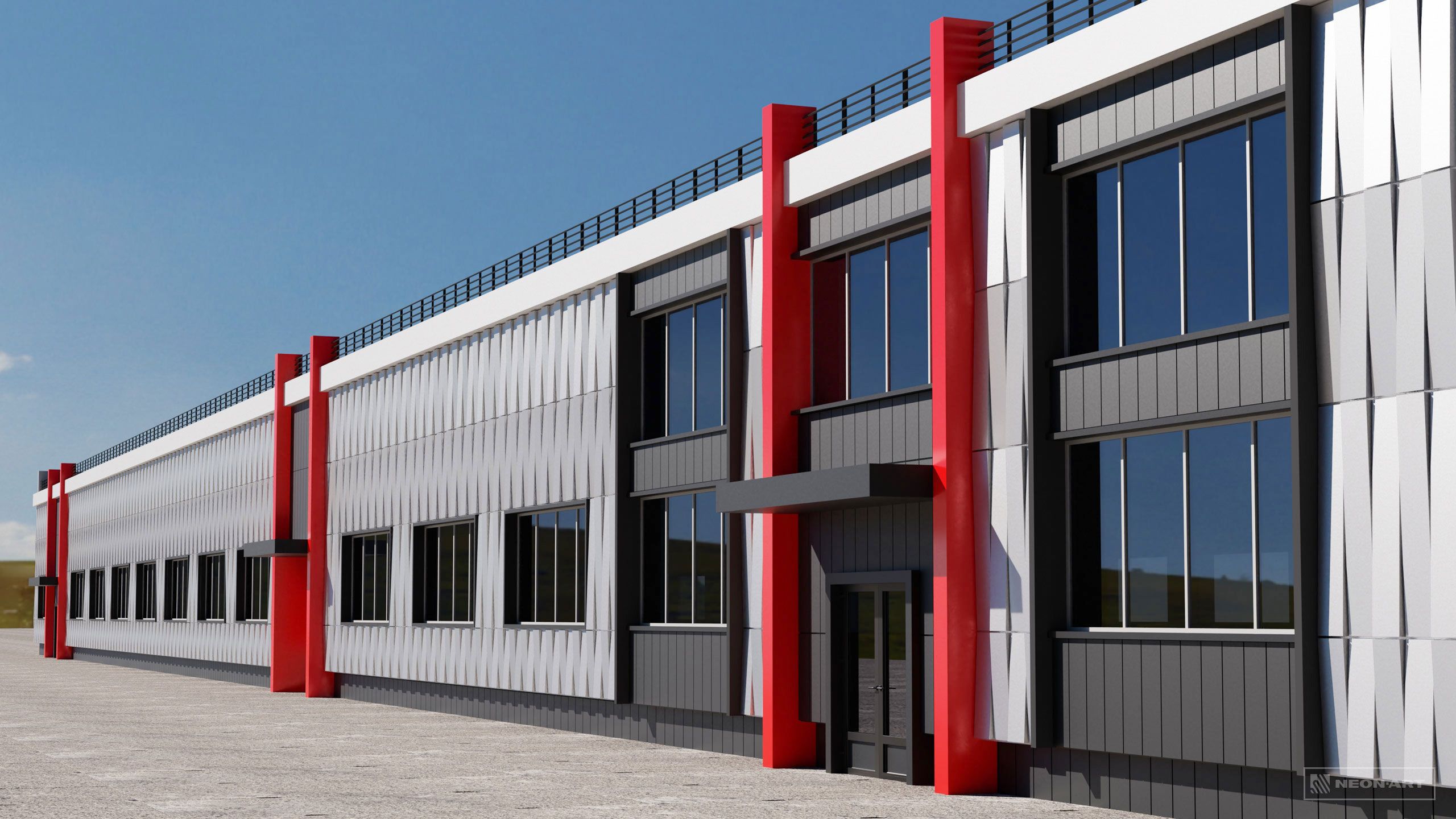 Концепция оформления фасада производственного здания металлическими панелями.