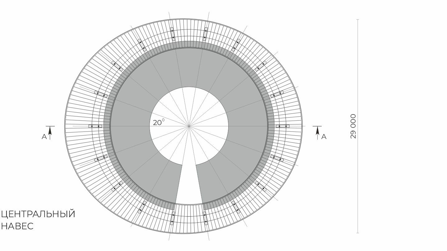 Центральный навес стоит над павильоном и частично опирается в чашу бассейна с фонтанами, с чем и связаны основные сложности в проектировании.
