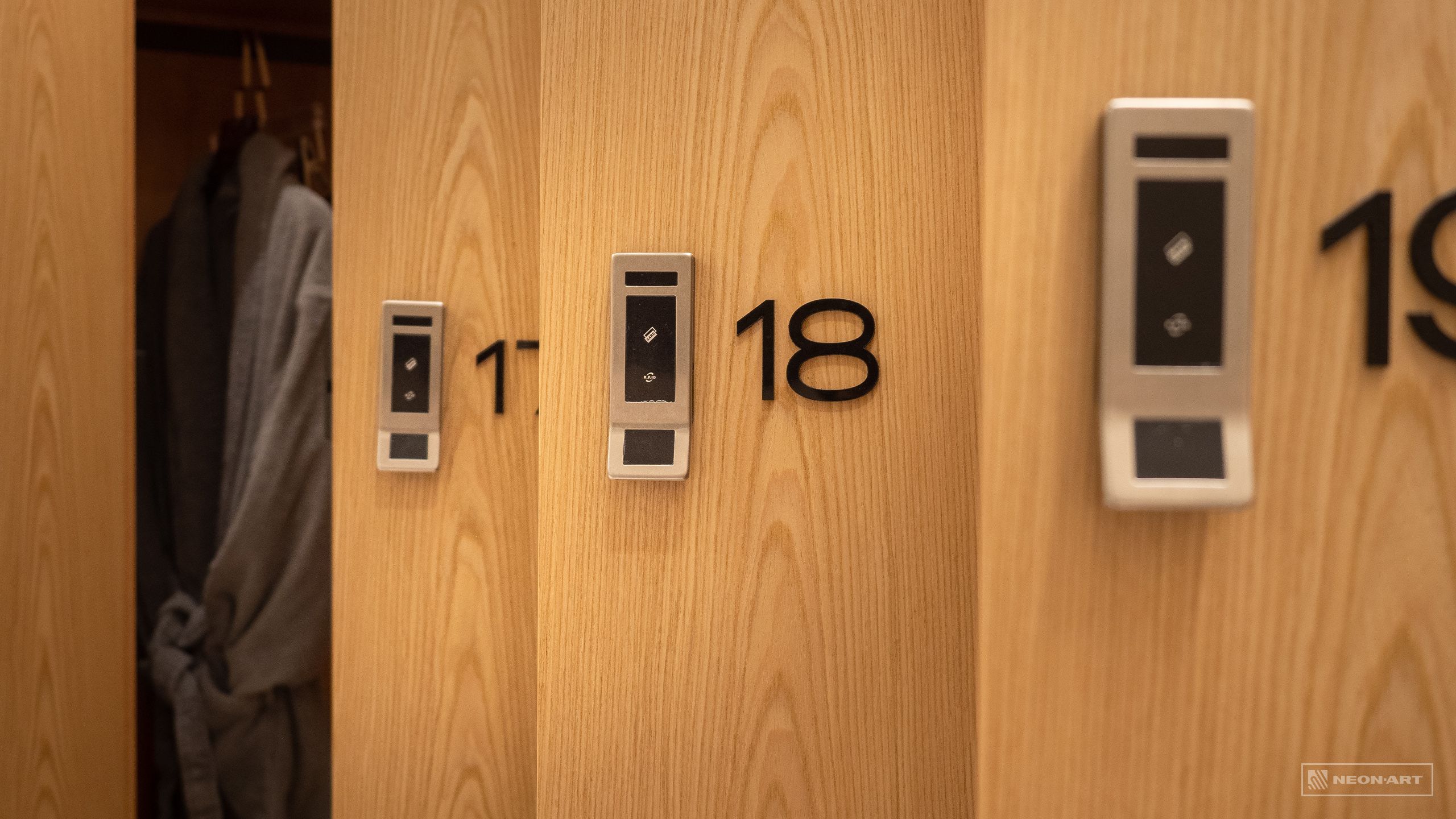 Номера на шкафчики сделаны из АБС пластика толщиной 3 мм и индивидуальным креплением для каждой цифры.