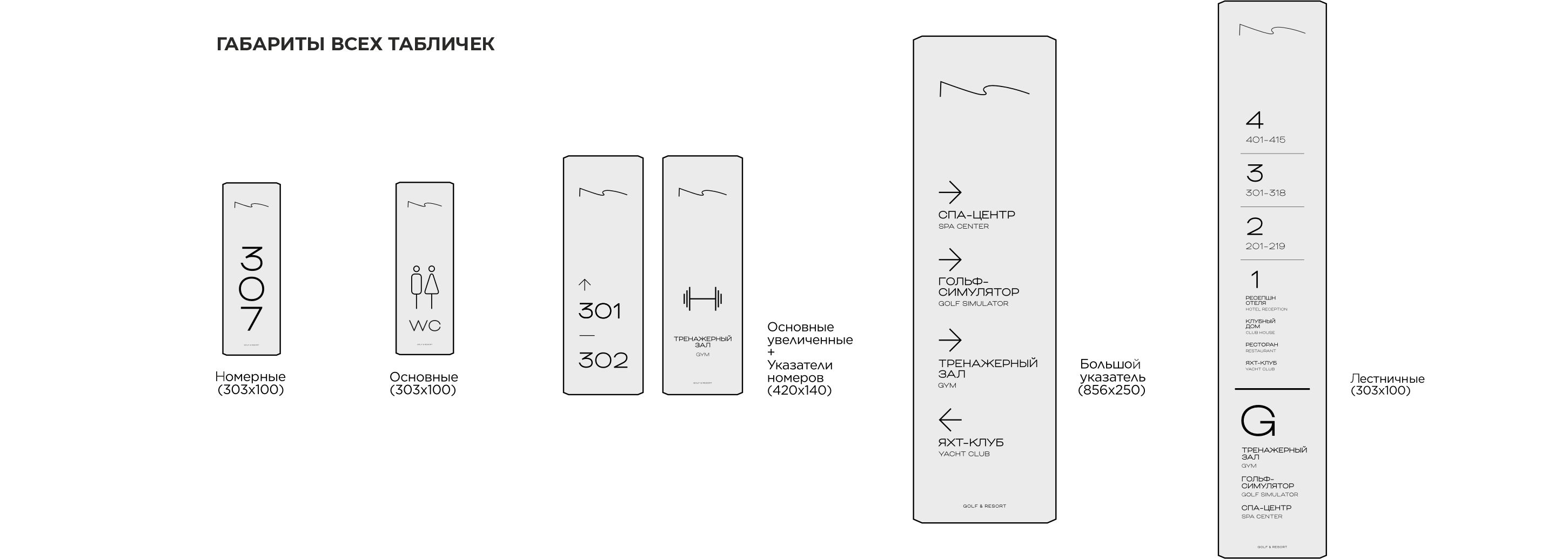 Основные таблички выполнены изшлифованной нержавеющей стали 1,5 мм. Также были добавлены гибы для придания объема навигации.