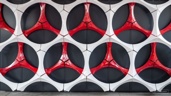 По специально разработанной технологии из акрилового стекла изготовлены стеновые и потолочные светильники до 4.5 м в длину. Отдельные элементы изготовлены по технологии термовакуумного формования.